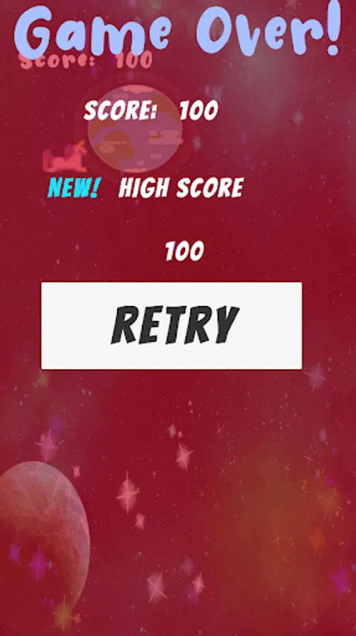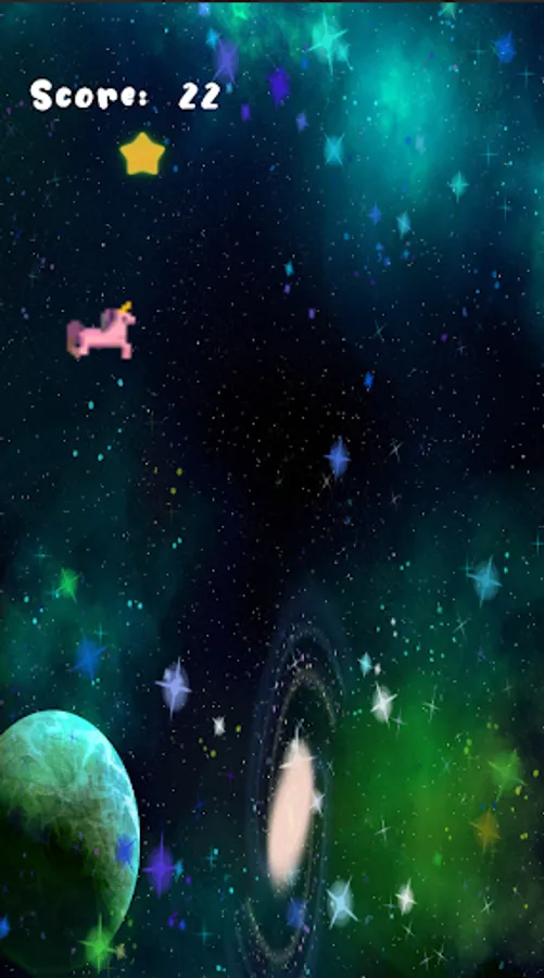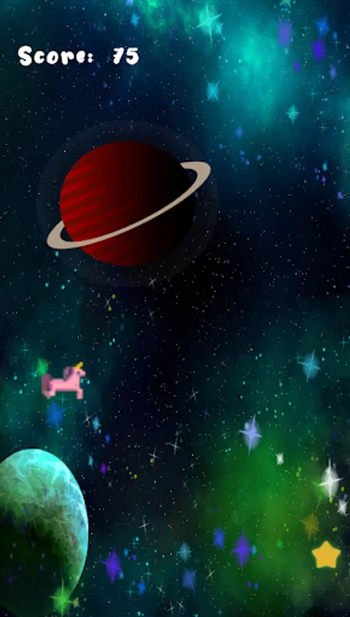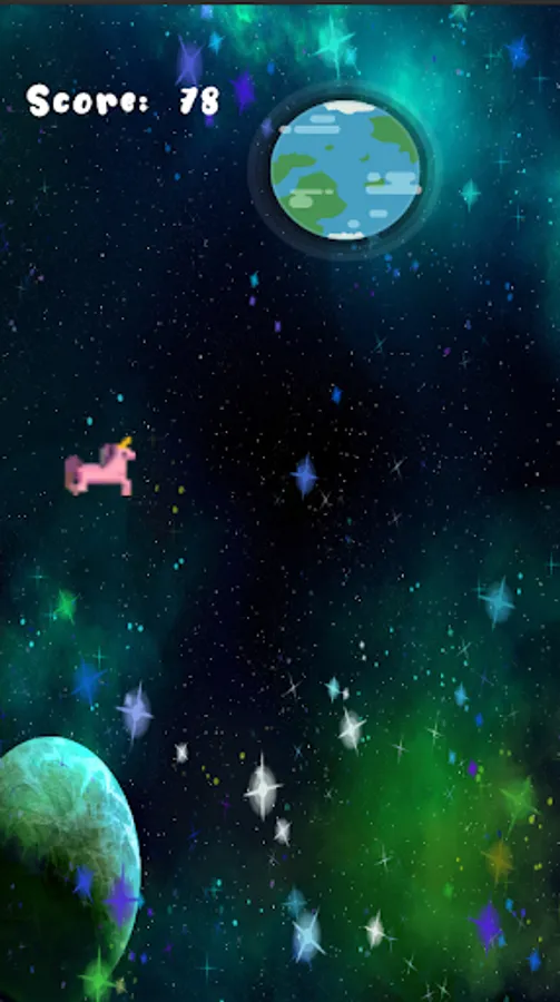 Keep your unicorn alive by tapping the screen and avoiding the planets!