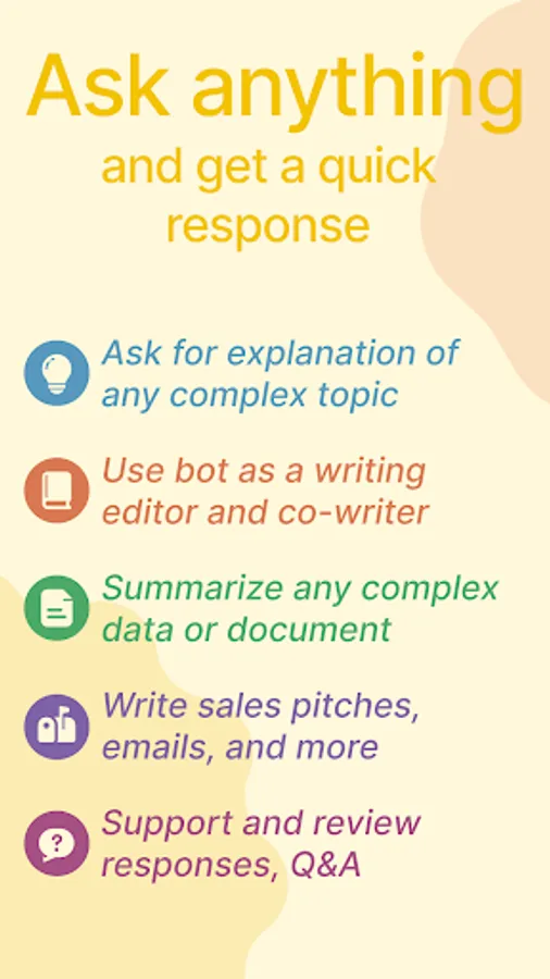Chatbot AI Plus is an independent application and is not affiliated with, endorsed by, or sponsored by OpenAI. This application uses the ChatGPT API provided by OpenAI, and it is developed, maintained, and operated by a separate entity. Any queries or concerns regarding Chatbot AI Plus should be directed to its respective developers, not OpenAI.