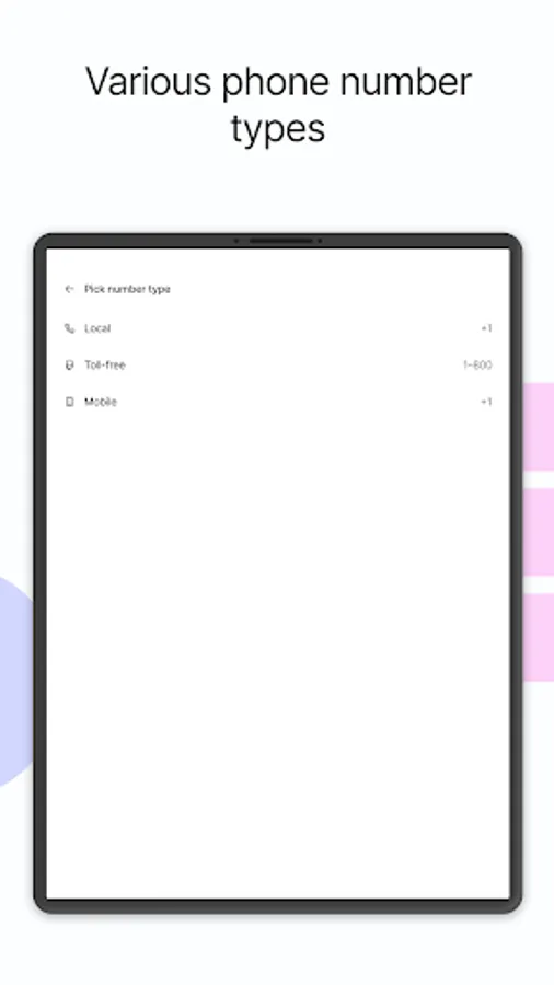 - Various phone number types. Choose between local and mobile numbers** to have.