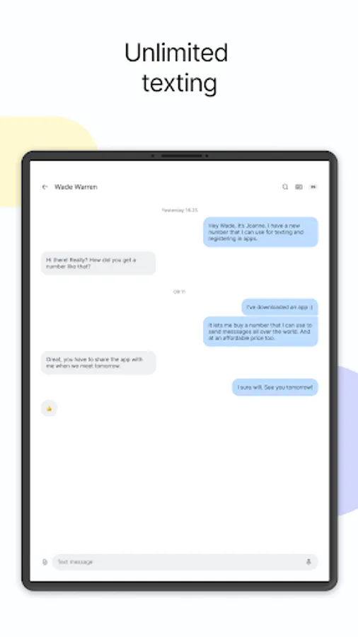 Text Us provides you with a second number that allows you to send messages worldwide.
