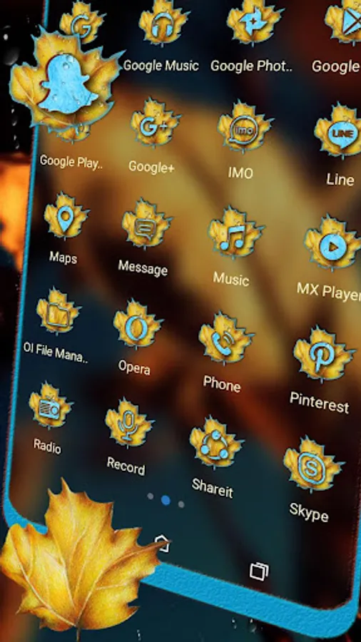 • Personalize the icons-Autumn Leaf Water Drop Launcher Theme contains custom icons!