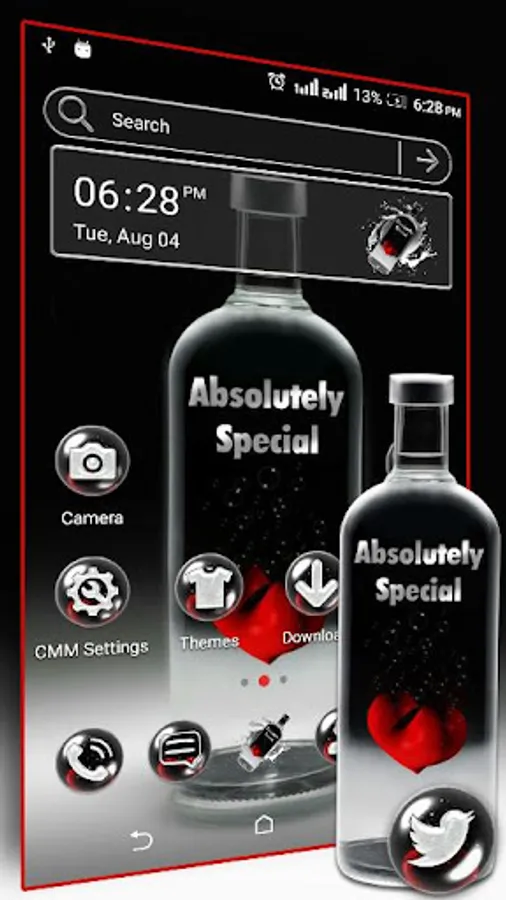 Black Bottle Launcher Theme is a safe, gorgeous, trendy Launcher theme, specifically designed for your phone. This theme features a single HD icon pack, stunning wallpaper, and helps make your phone personal and fashionable.