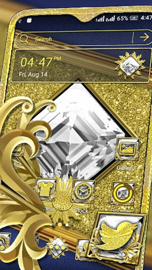Our Golden Glitter Launcher Theme, the HD Launcher App, lets you customize your smartphone
