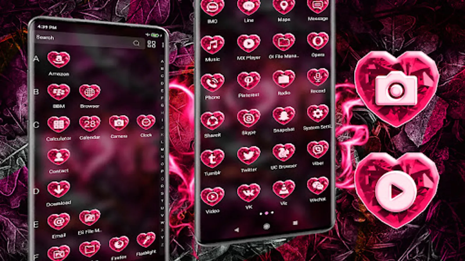 Our Love Flame Pink Launcher Theme, the HD Launcher App, lets you customize your smartphone