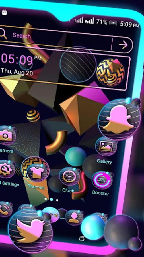 • Personalize the icons-3D Shapes Launcher Theme contains custom icons!