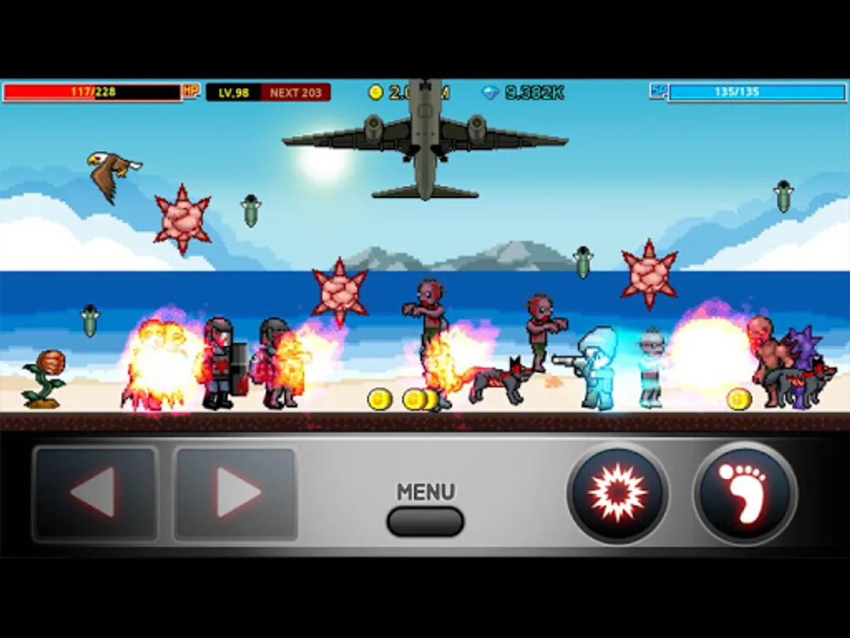 Defeat hordes of incoming Zombies and gather Gold to upgrade Peter.