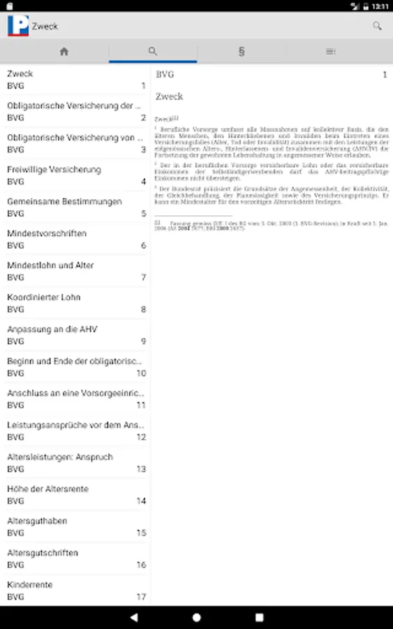 The PREVAS LOB app represents the first time the main statutory provisions of the (Swiss) occupational pension plans in German language. The search functions consist of a comprehensive index, any text search and of course a direct product search. Thanks to the PREVAS LOB app find trustees, managers, members of pension committees and all other stakeholders and interested parties quickly and clearly the relevant provisions of the 2nd pillar. Thanks to offline mode, the app is always on your tablet or mobile are available, regardless of the network connection.