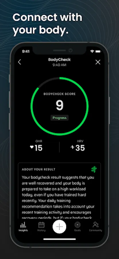 Our patented BodyCheck™ feature gives you a detailed full body analysis, advising you on how well your body has recovered from a workout and how to approach your training each day.
