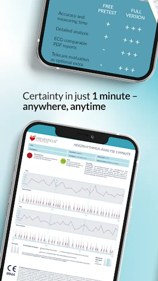 Use the free basic version to get to know the measuring process, determine your heart rate and get first hints if the app detects possible heart rhythm disturbances. The full version offers you additional features: