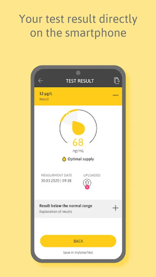 For the rapid test, a small blood sample is taken from the fingertip, quickly and easily. After 15 minutes, the result of the rapid test can be evaluated via the SmarTest Vitamin D app. You will then receive a quantitative result on your smartphone. The test is performed and evaluated conveniently and quickly on site, whether in the practice/pharmacy, at home or in the office.