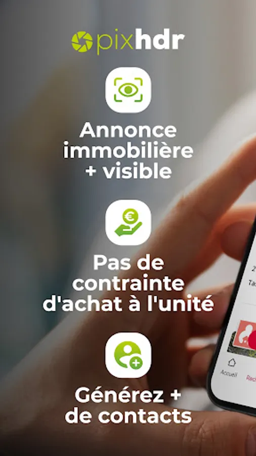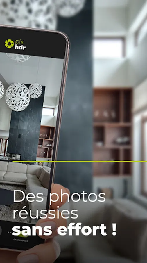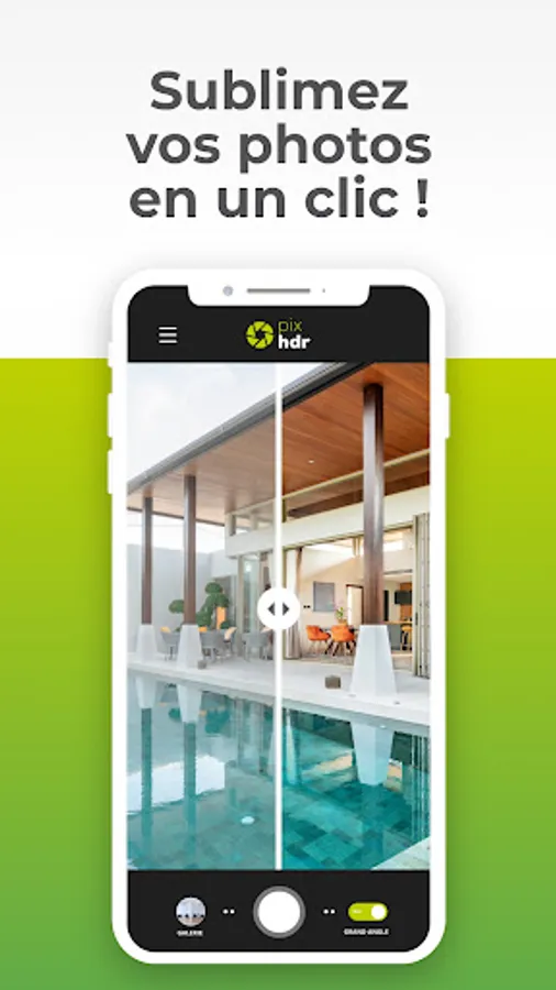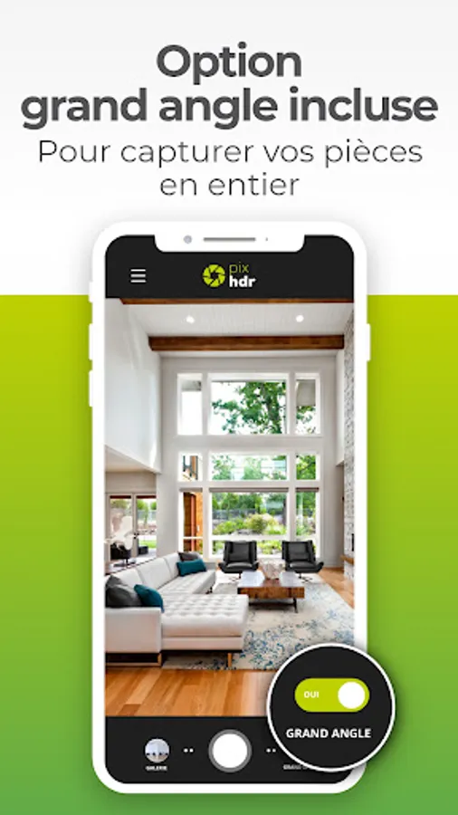 • Wide angle mode : Pix HDR allows you to take wide-angle photos to enhance the surface of the room and give it depth.