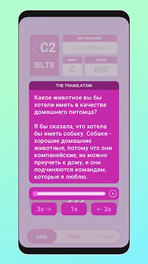 - see audio texts and translation;