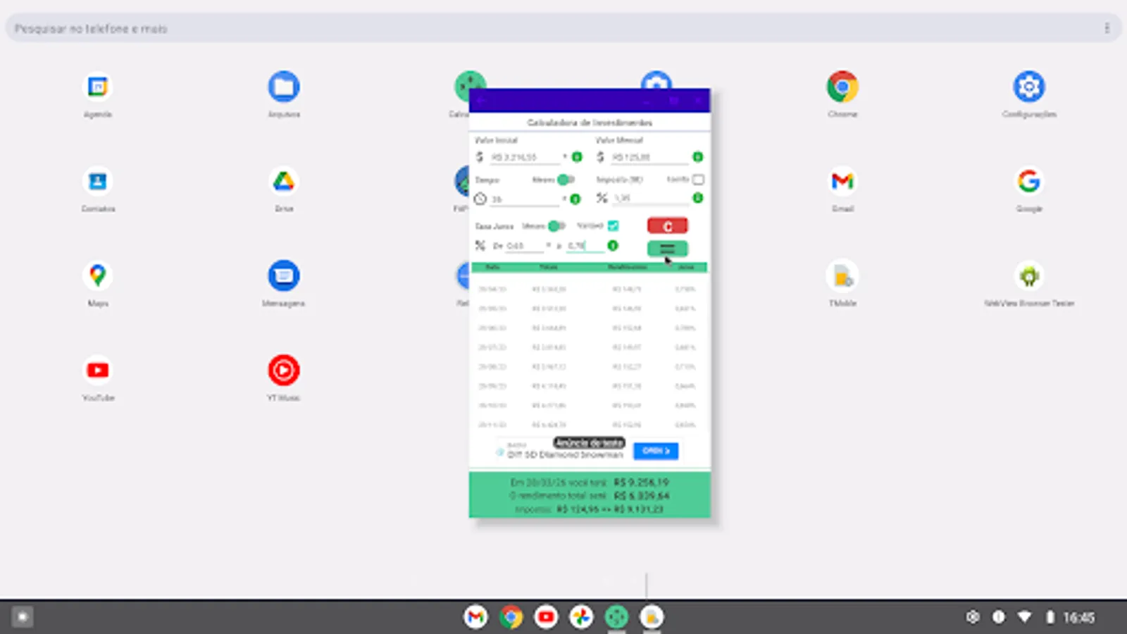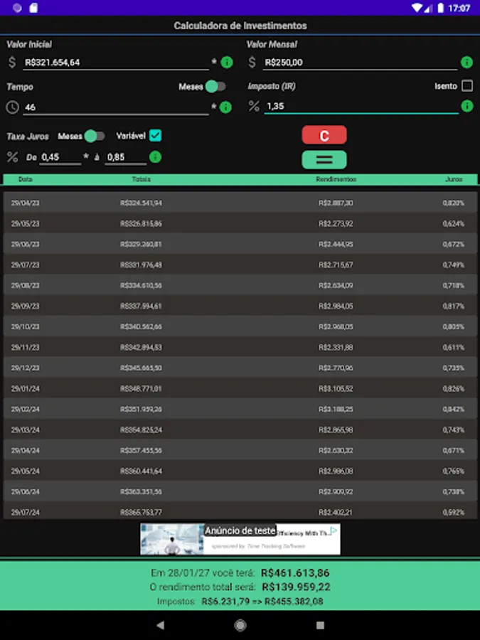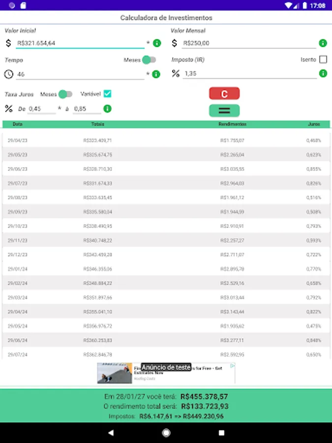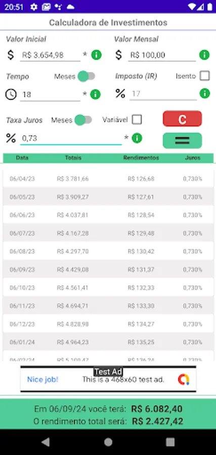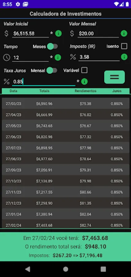 Count on the Calculator app to make your days simpler, it is a simple standard calculator to facilitate your calculations, and within it you will find a different investment calculator that will help you to have a projection of how your investments will be in a while.