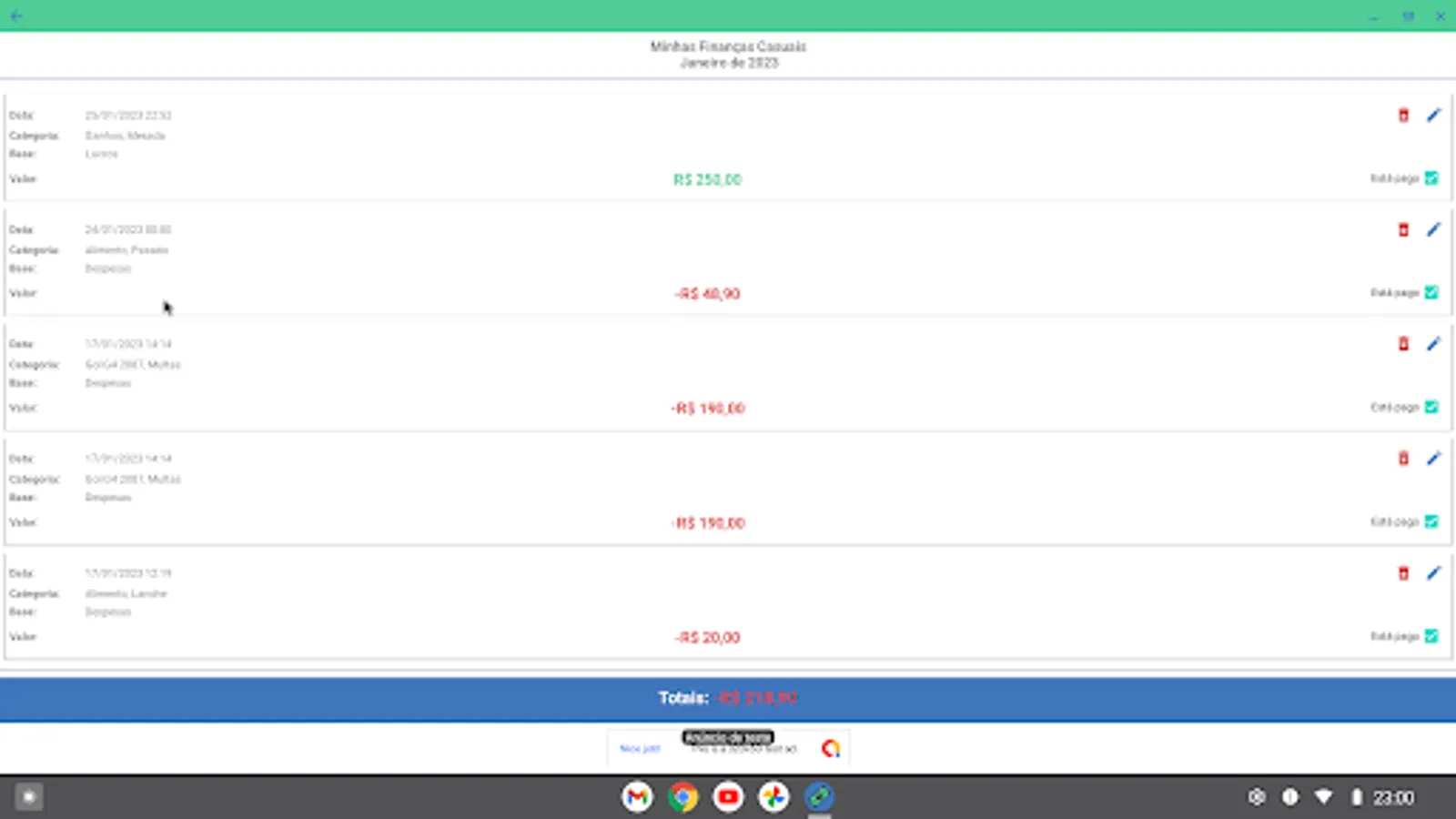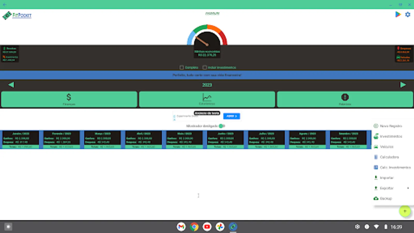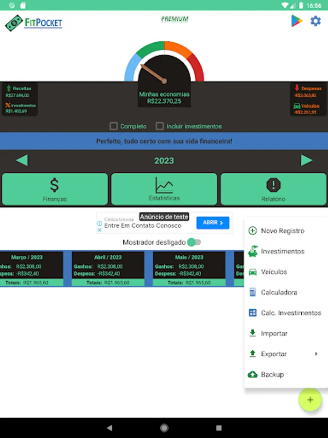 It's unpleasant to see money going to space and not understand how! So, using FitPocket can help you take care of your finances, with it, you can categorize and register your finances, and through FitPocket tools you can see in different ways what is happening in your financial world.