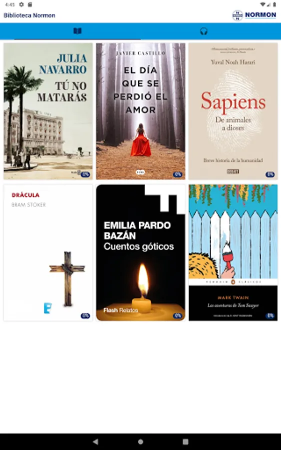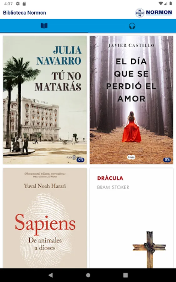 Digital books and audiobooks by great authors such as: Julia Navarro, Juan Gómez-Jurado, Javier Castillo or Yuval Noah Harari. The application has a complete Audiobook reader and player.