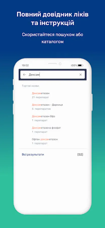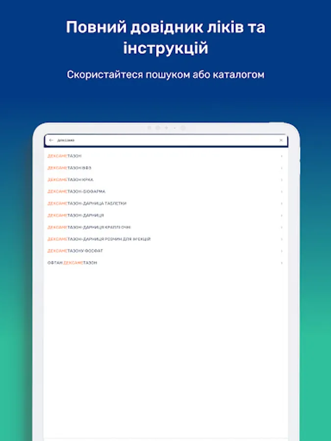 The application presents a huge number of the largest pharmacy chains of Ukraine: Pharmacy chain "Podorozhnyk", Pharmacy D.S., Pharmacy of Wholesale Prices, Pharmacy of Low Prices, "Med-service" chain, Pharmacy of Good Day (ADD), Pharmacy (FARMACIA), Pharmacy chain "VOLYNFARM" ", the network "AKS", and many others.
