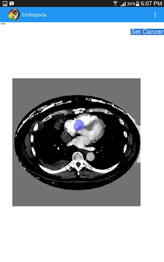 - Planning : In planning mode, user can create a region of interest on CT-Scan image to eliminate the background area and also can create cancer area that will be treated with radiation