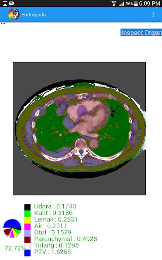 - Inspect Organ : The organ identification will be displayed automatically based on CT Number value that is stored in each pixel of CT-Scan image