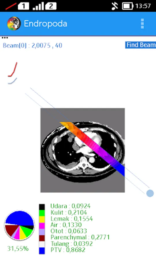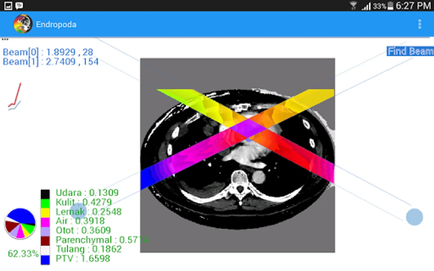 - Apply Beam : User can see the Beam direction for cancer treatment, including the colour distribution describes the absorbed dose