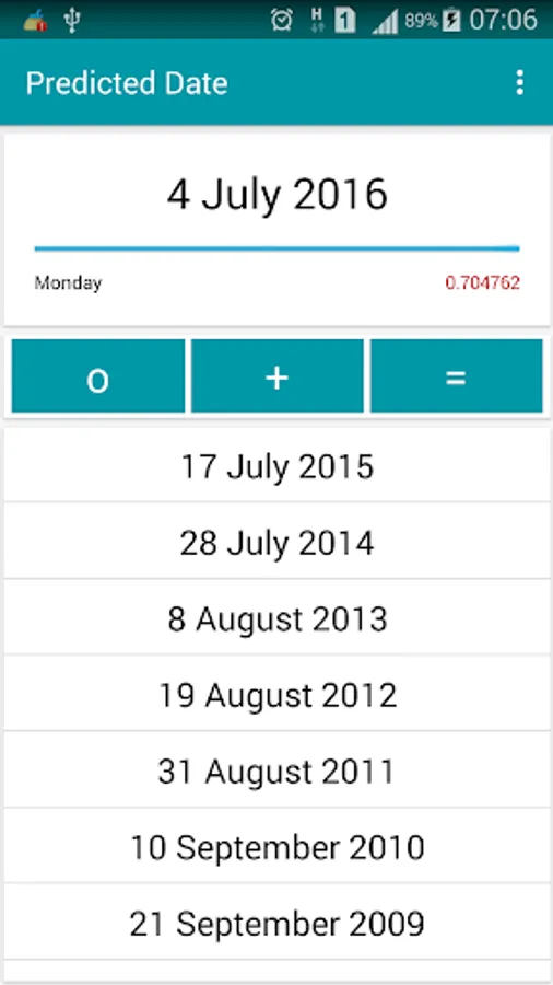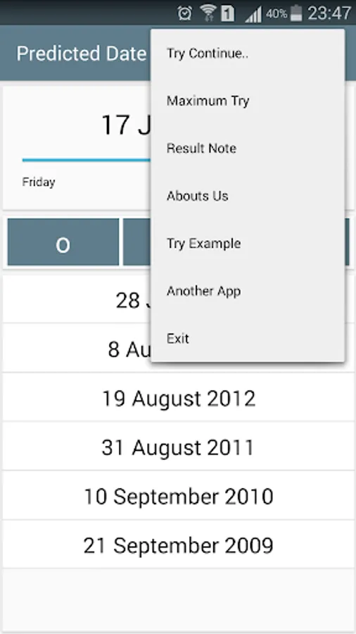 Predicted Date is a simple app that implement the Julian Date Lib from Smart Calc library that was made by Computational Physics Laboratory, Department of Physics, Faculty of Mathematics and Sciences, Brawijaya University Malang. This app is try to approach the next date from few input date, based on the cycle that generate by Smart Calc predicted engine. This app was also improved by approach method that used in Novita's Final Task. For example to predict the cycle of Moon Sighting, first day of Ramadhan, first day of Eid al-Fitr and other periodicity dates.