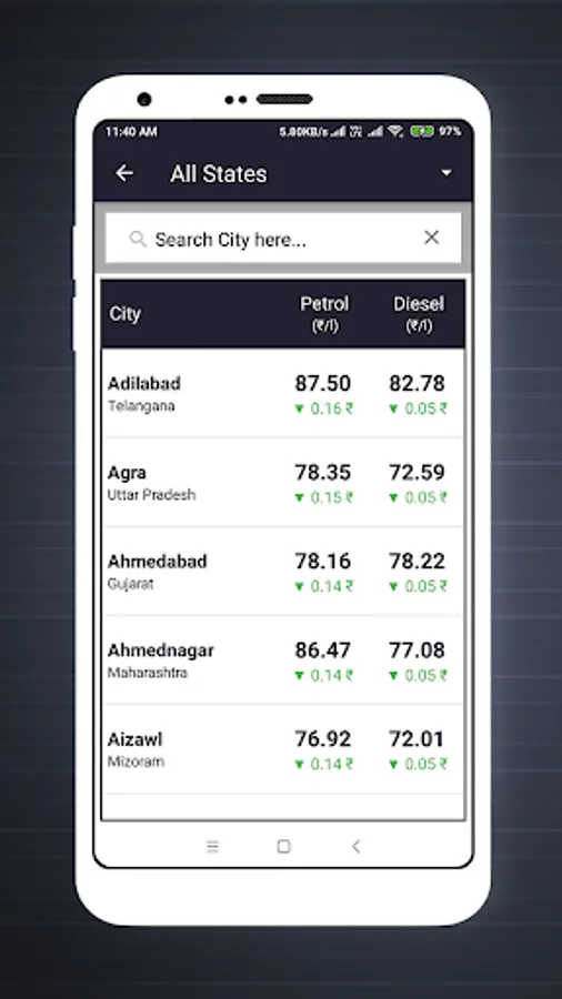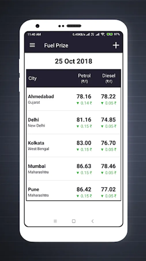 → Daily Petrol Diesel Price India App also shows you the difference in the fuel prices ever day.