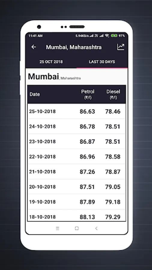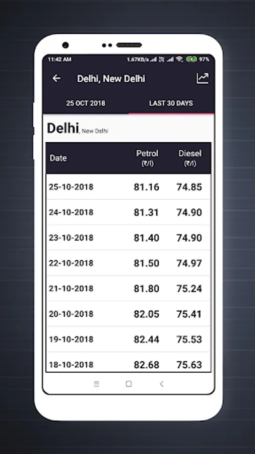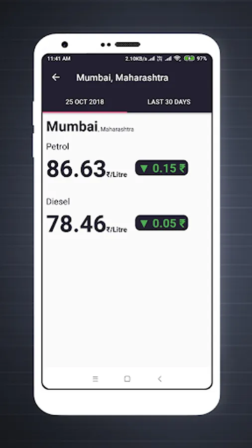 → With this Live Fuel Price app you can also check the Fuel price for last 30 days.