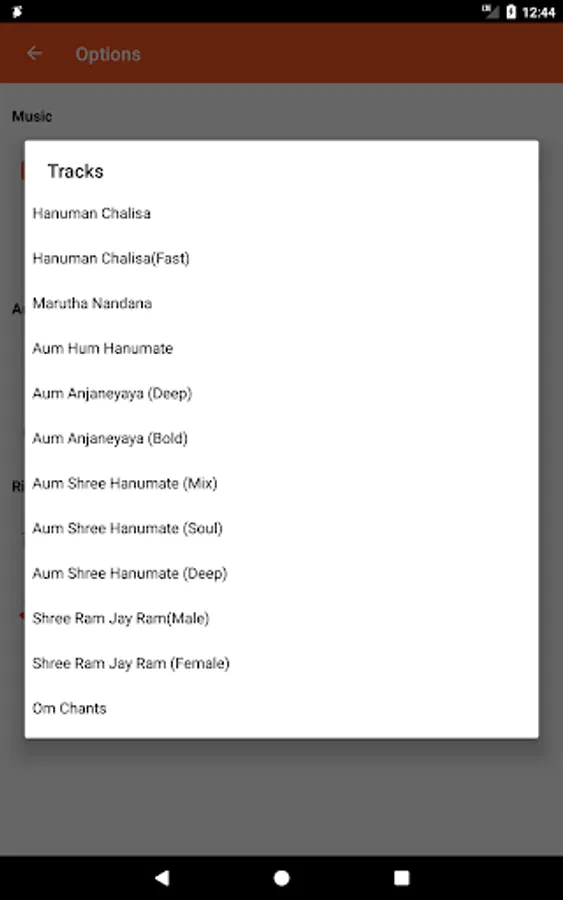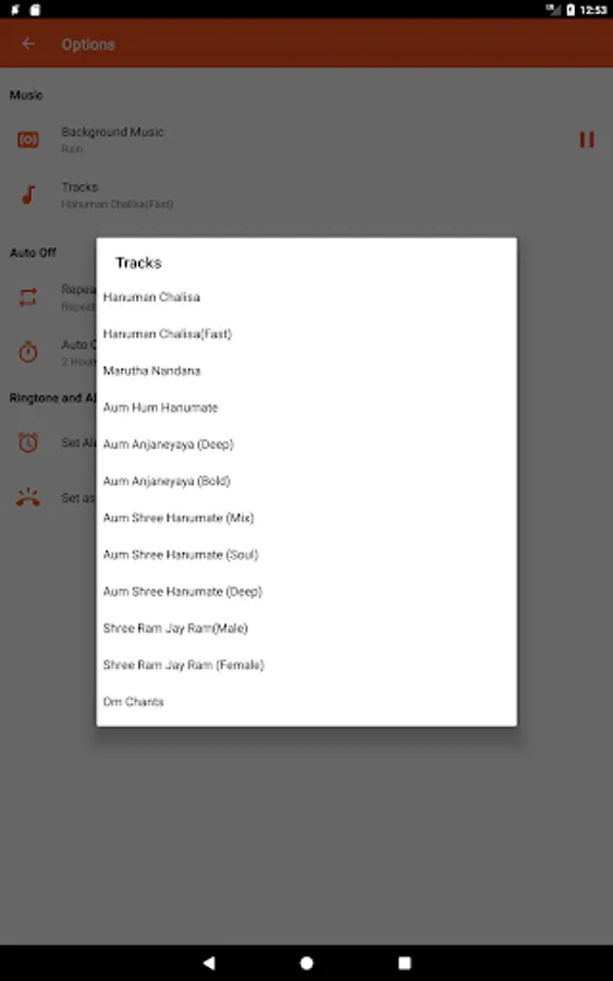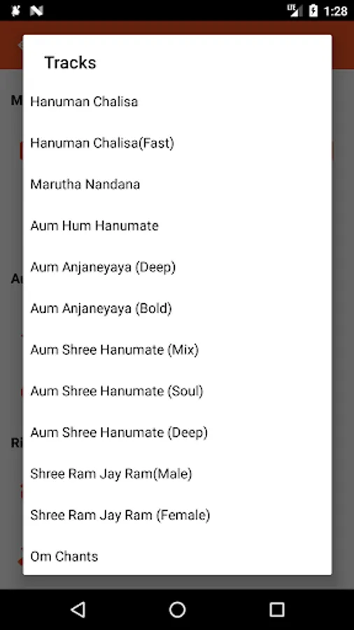β 12 Different audio tracks ( 1. Hanuman Chalisa Audio, 2. Marutha Nandana, 3. Aum Hum Hanumate, 4. Aum Anjaneyaya (Deep), 5. Aum Anjaneyaya (Bold), 6. Aum Shree Hanumate (Mix), 7. Aum Shree Hanumate (Soul), 8. Aum Shree Hanumate (Deep), 9. Shree Ram Jay Ram, 10. Shree Ram Jay Ram(Female), 11. Om Chants, 12. Hanuman Chalisa (Fast Version), 13. Hanuman Ashtottara Shatanamavali (108 Names of God Hanuman) )