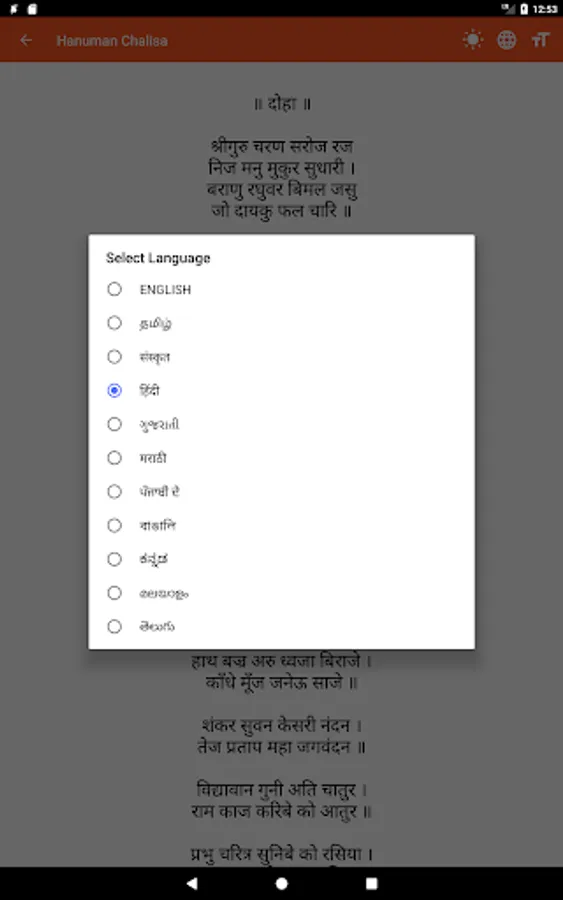 β Choose between different languages of lyrics (English, Hindi, Gujarati, Tamil, Telugu, Kannada, Malayalam, Bengali, Punjabi, Marathi, and Sanskrit)