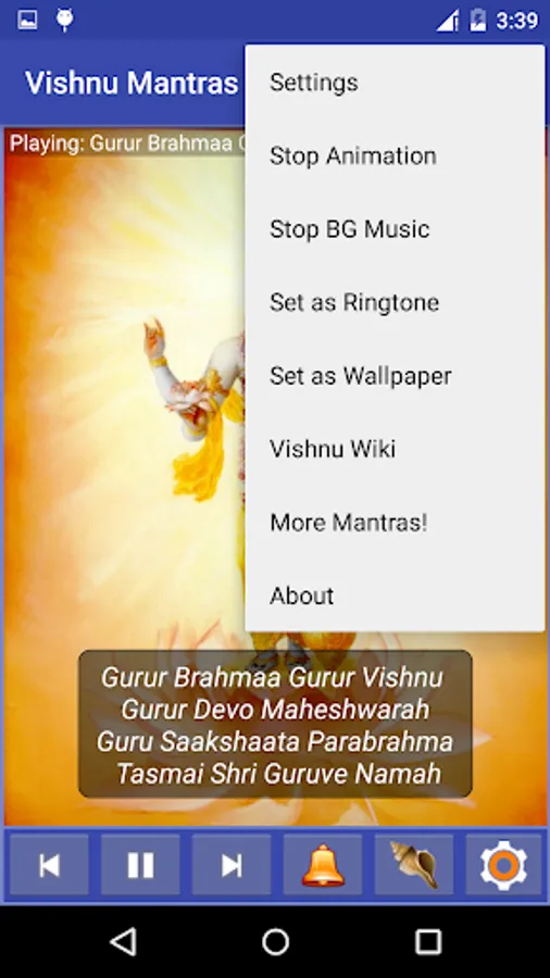 ★ Different audio tracks ( 1. Suklam Baradharam Vishnum 2. Shantakaram Bhujagasayanam 3. Guru Brahma Guru Vishnu)