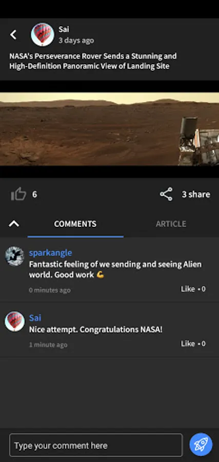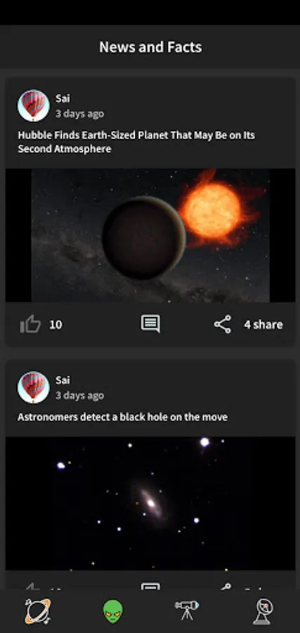 - Latest Space News (likes, comments, share stories)