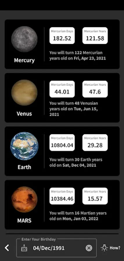 - Calculate Age on other planets