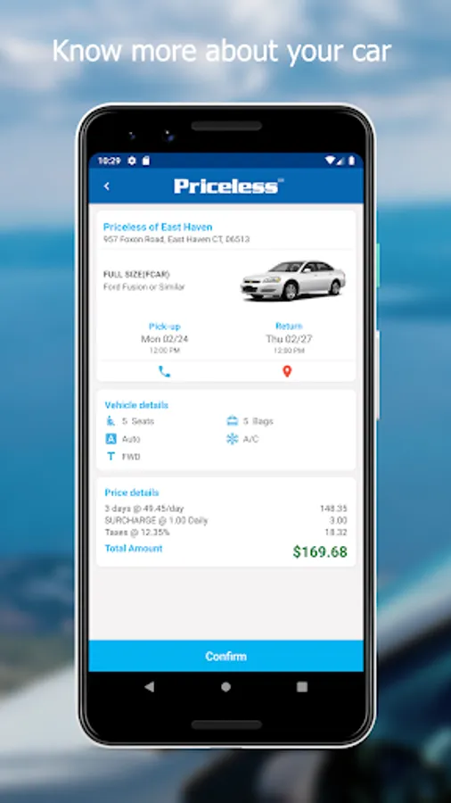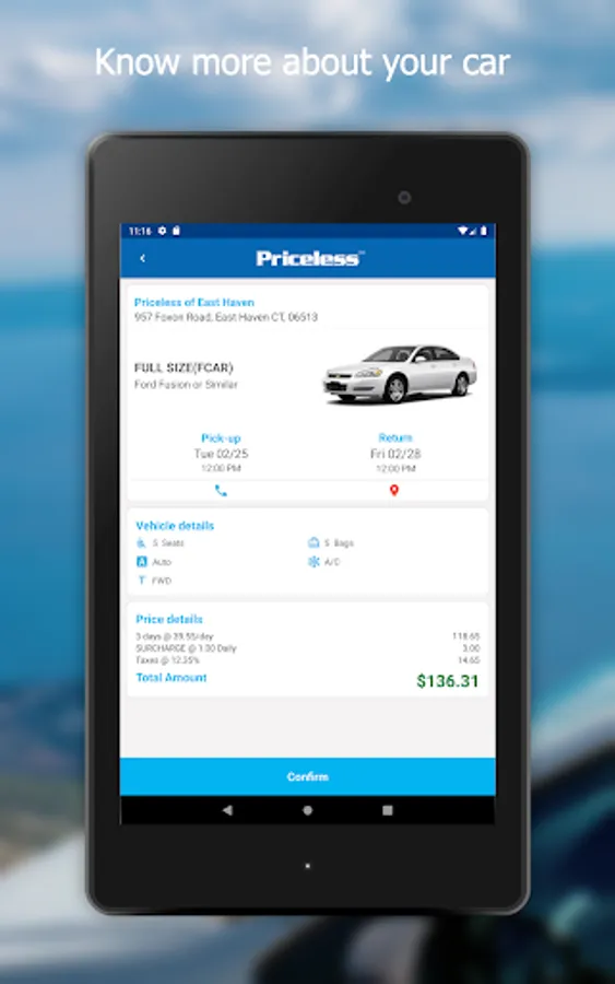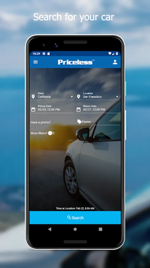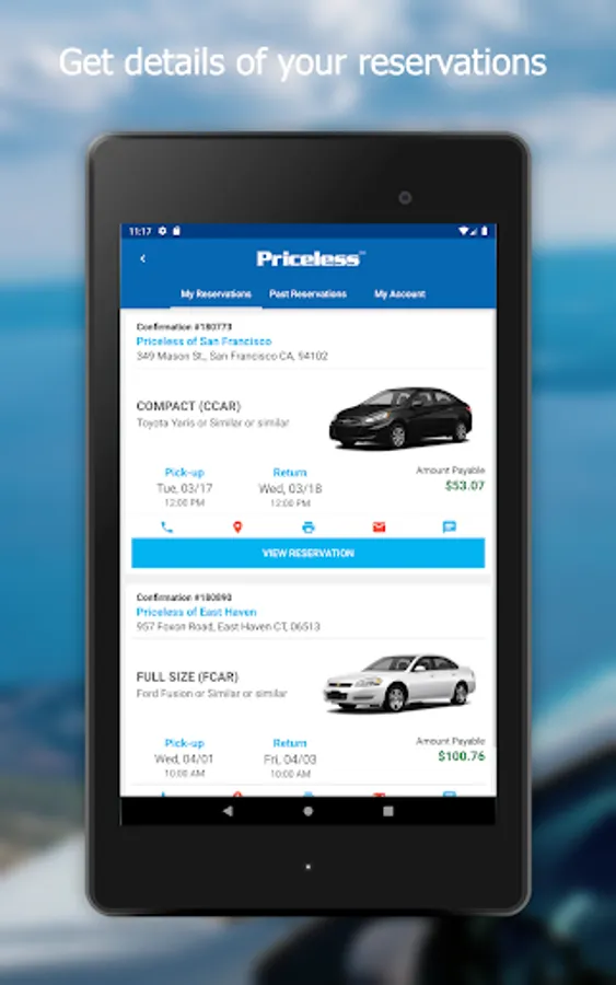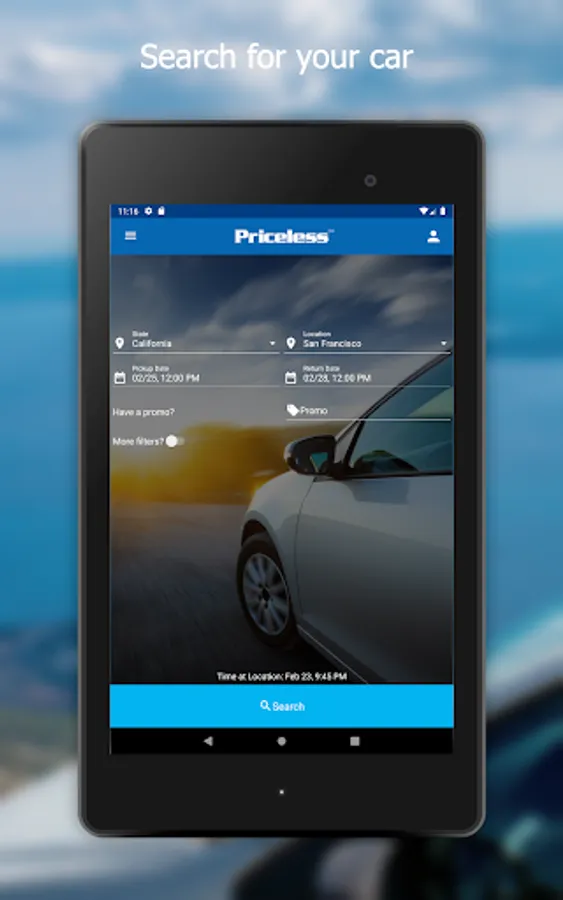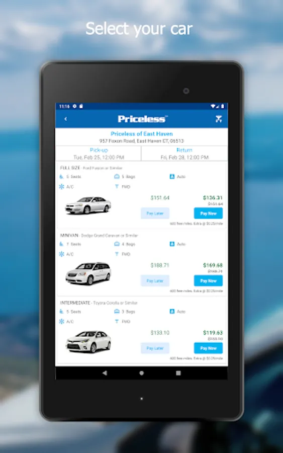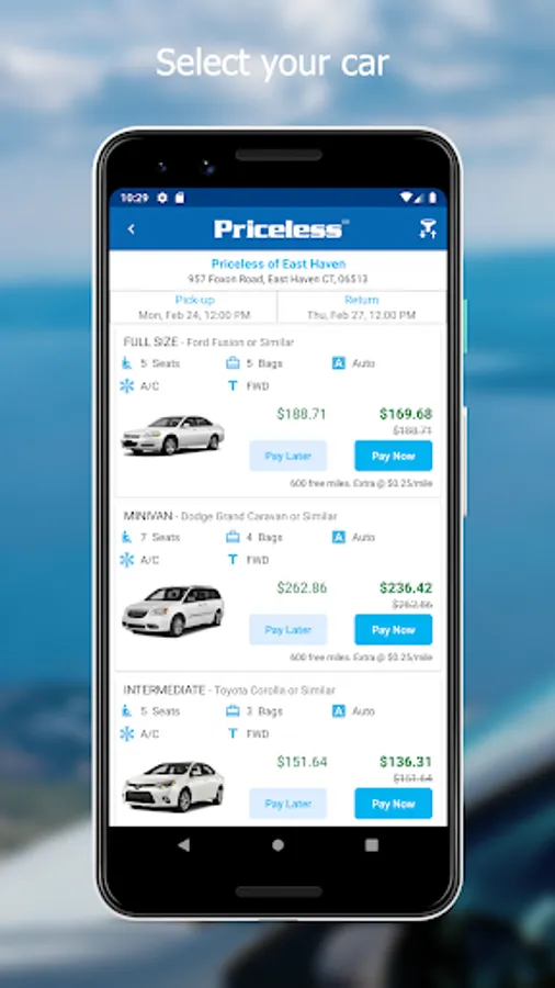 What Priceless car rental app offers you: