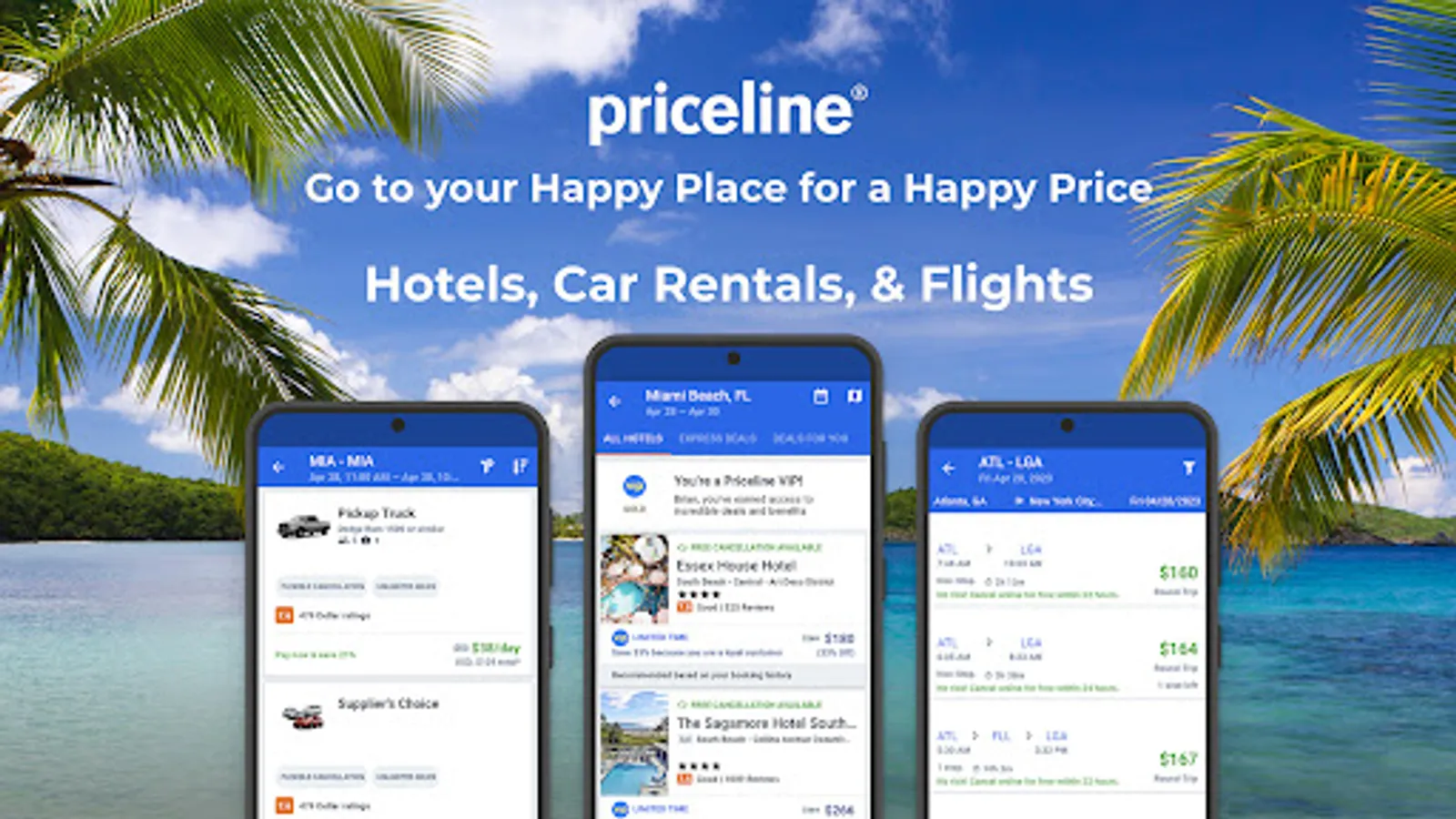 Save on your next trip with exclusive deals on hotels, flights & rental cars in the Priceline app. From cheap flights to amazing hotel room offers, you’re guaranteed to find deals you won’t want to miss.