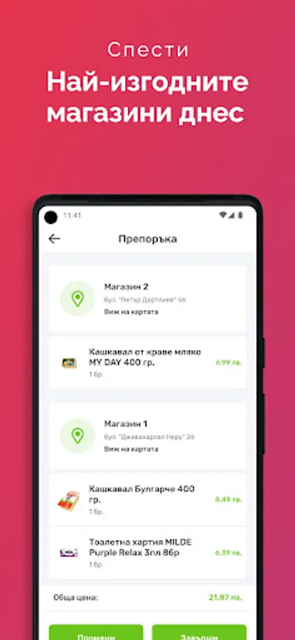 С Price Patrol си наясно точно колко струват любимите продукти наоколо днес. Няколко клика и продуктите са в кошницата ти за пазаруване останалото остави на Price Patrol. Цените на продуктите в кошницата ще се сравнят с всички поддържани магазини наоколо и ще видиш в кой от тях ще платиш най-ниската цена за същите продукти.