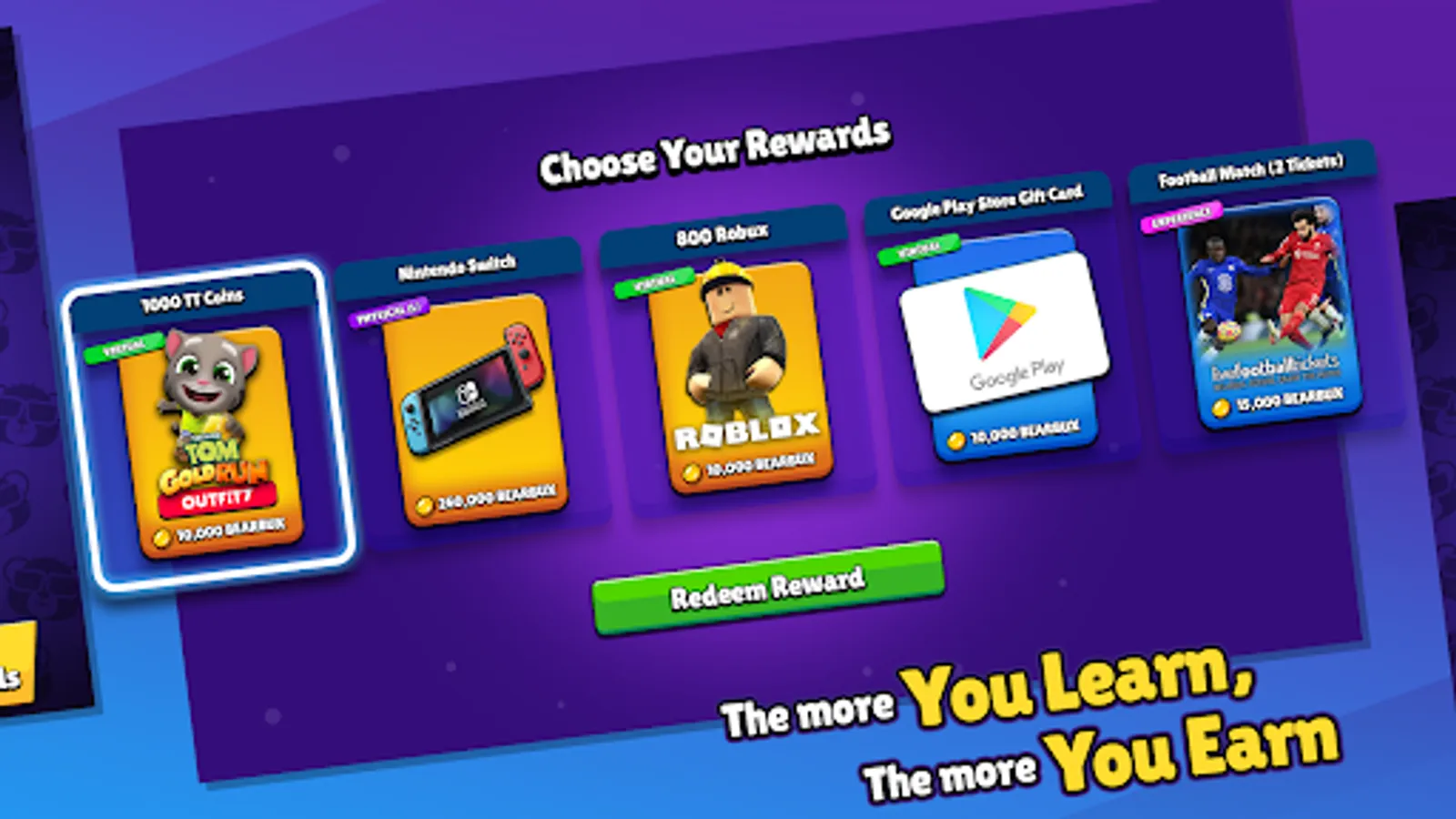 "I love how you can earn Bearbux to spend on rewards like Robux and physical items like Lego sets." - Guy