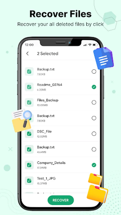 Two types of recovery: Backup and Restore. You can scan your phone and save it in your phone memory, SD card, Google Drive. In this you can backup and restore all data like photos, videos, files, music, documents etc. We provide you with a user interface app that you can easily understand and use.
