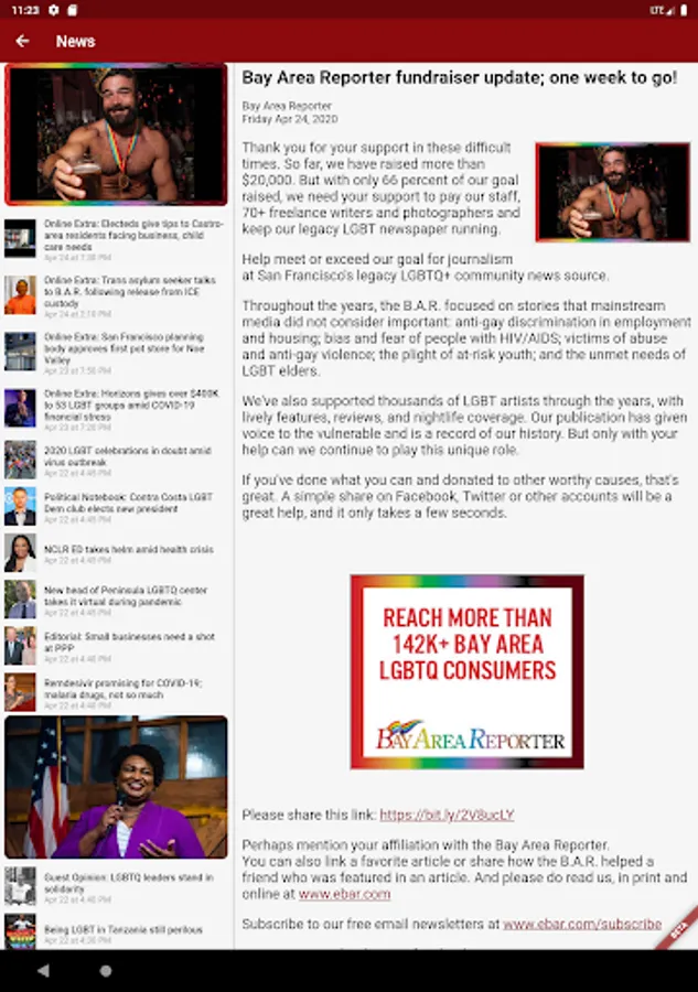 Now you can get all the same LGBT Bay Area news as seen in their print and online version right here on your mobile device, in an easy-to-use intuitive app. With a calendar of local events that can be added to your device's calendar, a comprehensive directory of LGBT-friendly businesses in the area, local weather reports and a weekly lineup of news that's important for your community, you won't want to miss having this free app on your phone or tablet!