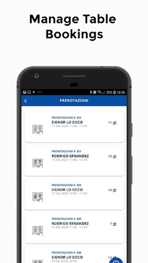 - Stampa automatica delle prenotazioni tavolo su apposita stampante termica Primafila;