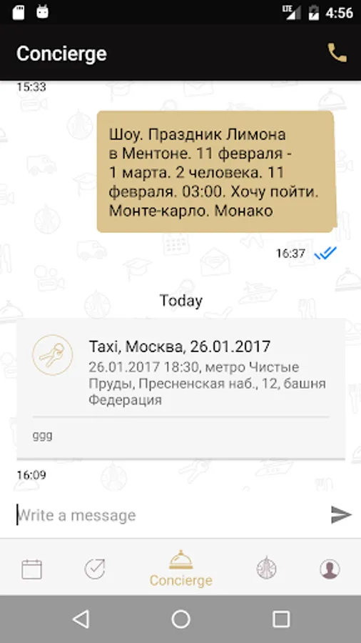 The application allows the Prime Concierge Service Client to use the following functionality: