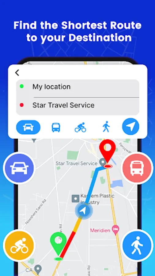 Allow user to find route to destination. Route Finder Helps you to Find distance and traveling time between start and ending location with shortest and easiest path available. Route Finder helps in voice GPS Driving Directions and Navigation on Maps. Travel around the world and navigate.