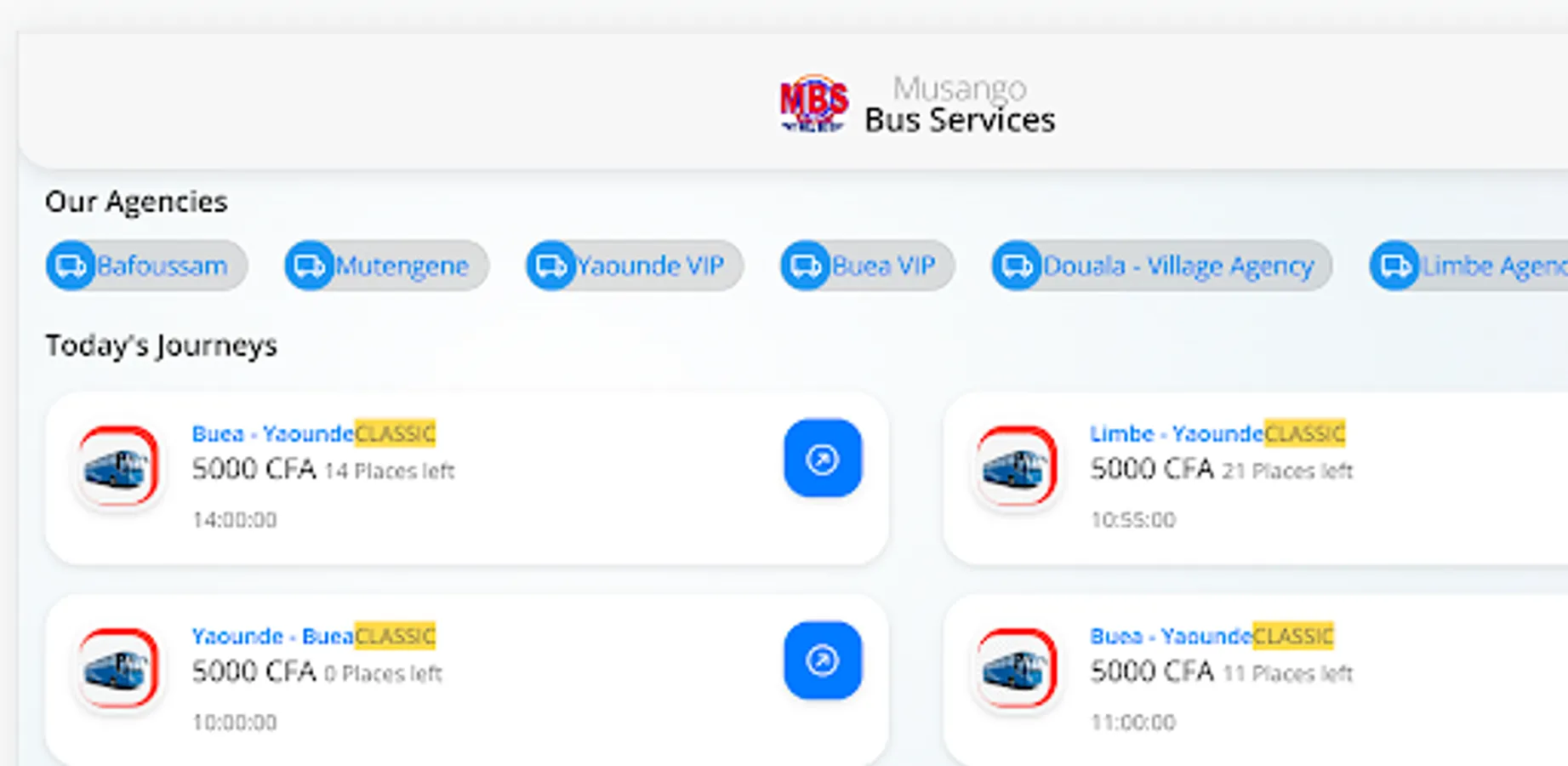Musango Bus Service is a leader in inter-urban transportation in Cameroon with agencies in Douala, Yaounde, Bamenda, Limbe, Mutengene, Bafoussam and Bamenda.