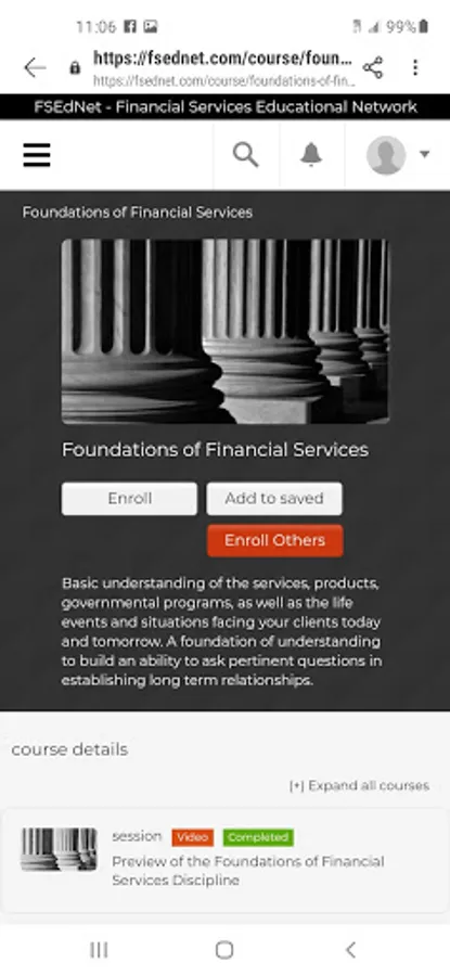 Welcome to the official app of the Financial Services Educational Network (FSEdNet). This app contains on-demand video training to help establish the cornerstones of your practice by utilizing consistent growth and nourishment that will lead to increased retention of your clientele. FSEdNet’s curriculum provides the groundwork of understanding your prospect’s individual situation, their financial challenges and the basic concept of roles of the different products and services that they may have, want or need. The purpose of the FSEdNet app and courses is to give you a platform of understanding on which to build a successful career in the financial services industry by having a strong foundation in the many different areas, services and programs that individuals, families and businesses have in today’s ever-changing world. It will provide you with the fundamental knowledge needed to engage your clientele, both current and prospective, in order to build a solid relationship framework of understanding.