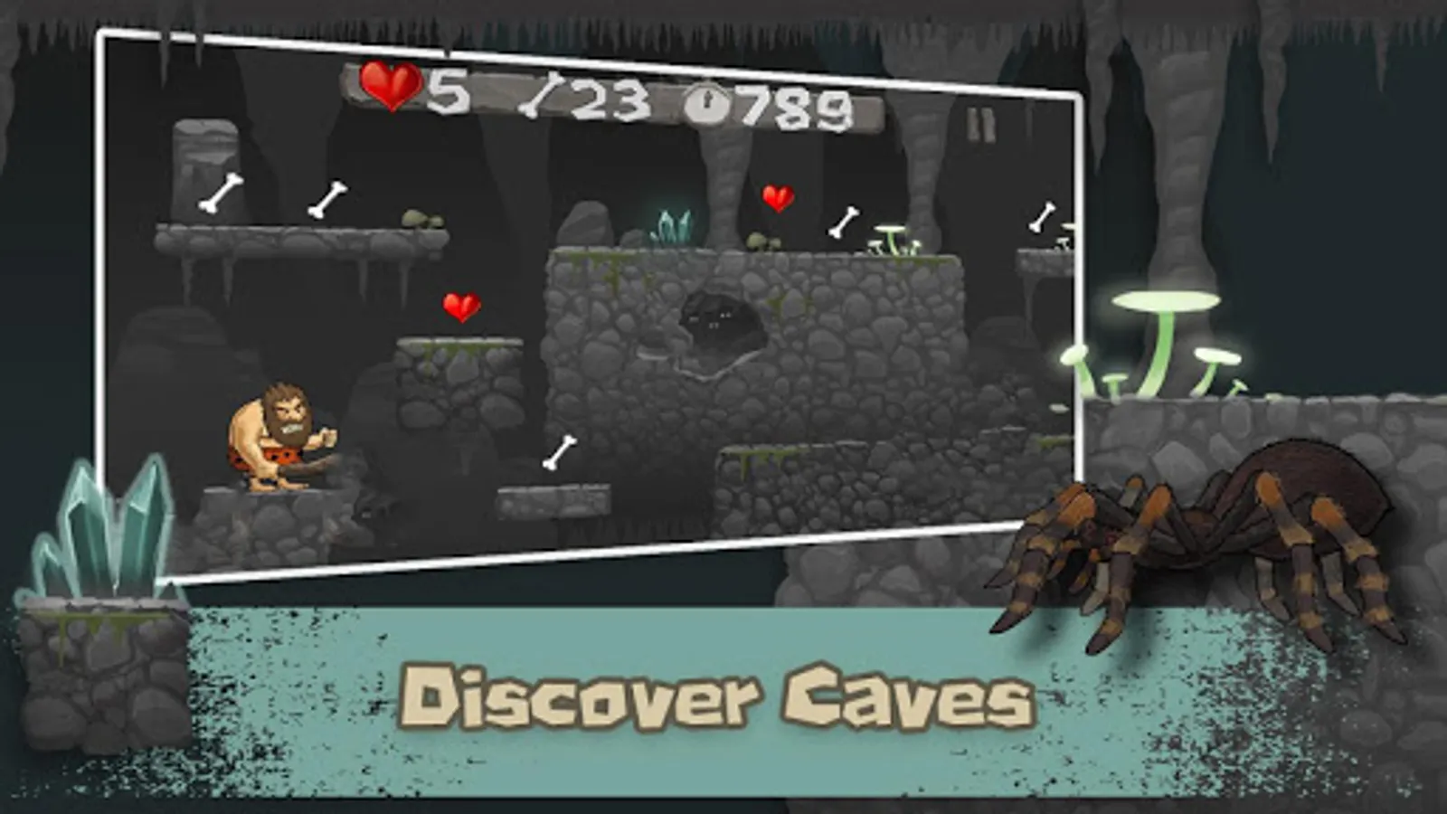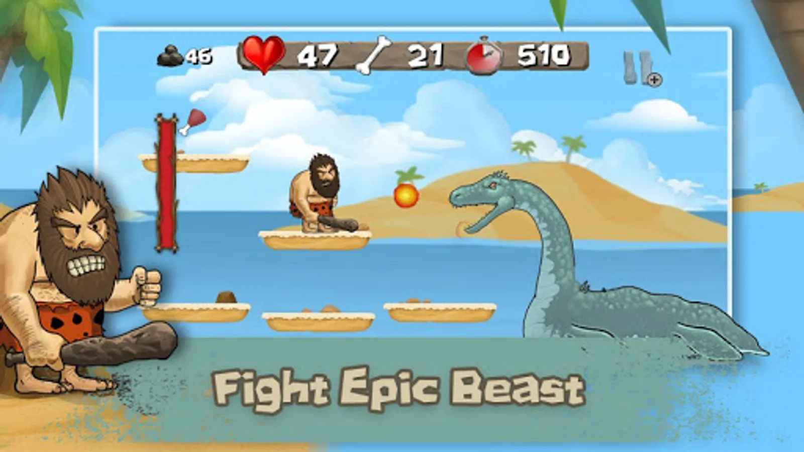 Caveman Chuck is a classic 2D platformer inspired by game "Big Nose" where you fight with dinosaurs in stone age. You’re taken back all the way to the Stone Age where you play the role of a crude caveman named Chuck. You’ll quickly realize he shares his cave with his wife, who is heavily invested in the relationship, and as things often have it, she yells at him rather frequently.