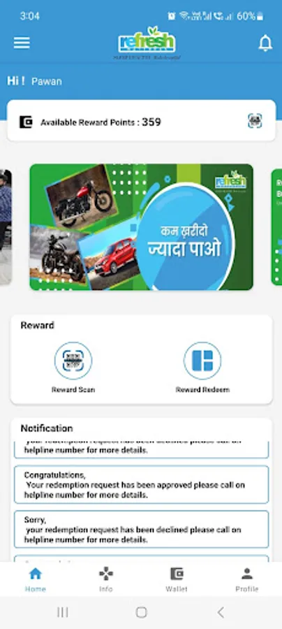 Refresh Saathi Karigar is a special reward program to earn free reward points on purchase made with us. One can redeem these reward points to get attractive discounts on next purchases. Also get notifications of new offers.