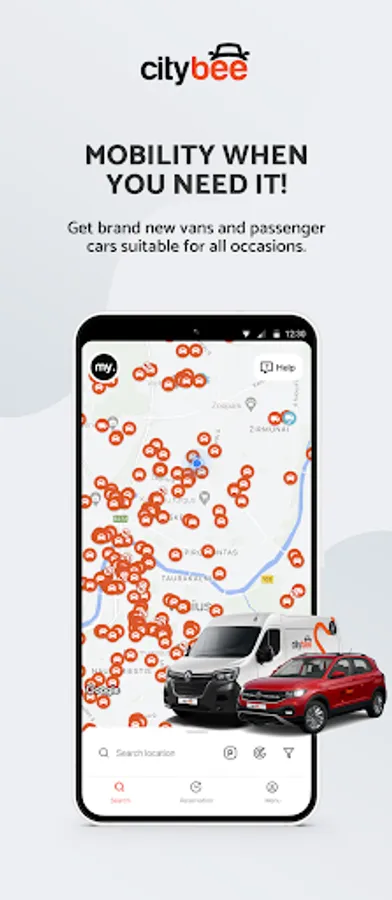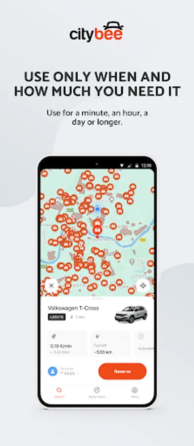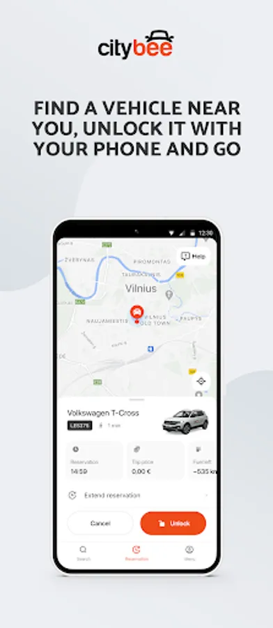 Find a car nearby, unlock it using your phone, travel wherever you want across Baltic countries and leave where convenient in CityBee zones.