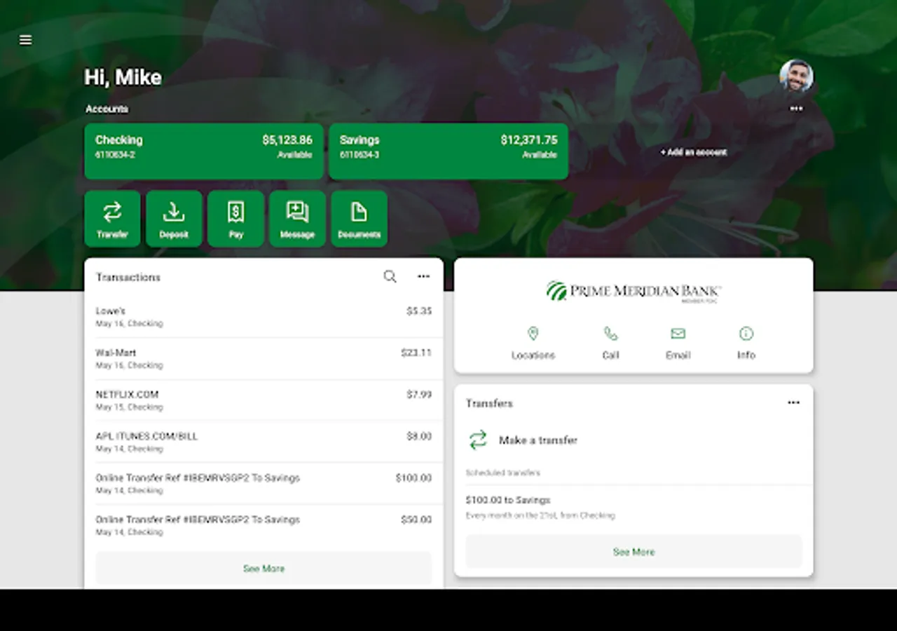 Banking with your community bank just became even more convenient. Mobile banking with Prime Meridian Bank is your gateway to 24/7 control of your financial resources. It’s fast, easy, and secure and empowers you with the tools needed to manage your money.