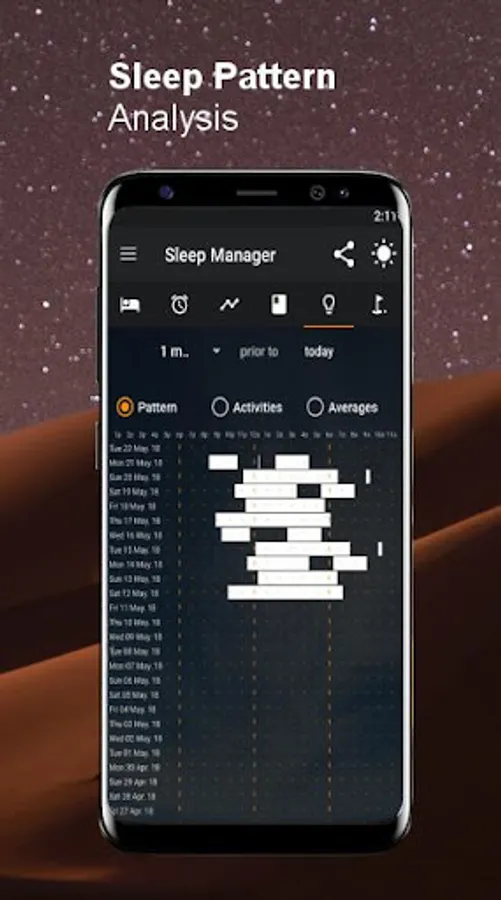 - For most people best sleep is achieved through regular sleeping patterns (similar bedtime) averaging about 8 hours of sleep every day. The app is meant to assist people in finding out their exact sleeping patterns in order to make informed changes. The sleeping times are thus most important, the information shown in the graphs is mainly used by the smart alarm function.