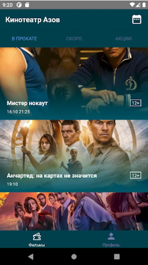 With the Azov Cinema application, you can purchase tickets for any screenings at the Azov Cinema in Polevskoy.