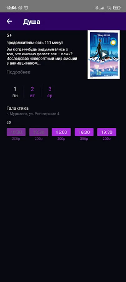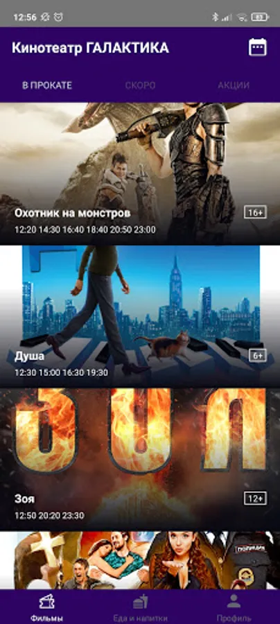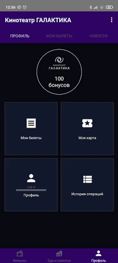 In the Galaktika application you can purchase tickets for any movie show at the Galaktika cinema in Murmansk. You can also purchase cinema bar products. When you purchase tickets or cinema bar products through the app, you will receive bonuses that you can use the next time you purchase tickets or cinema bar products.