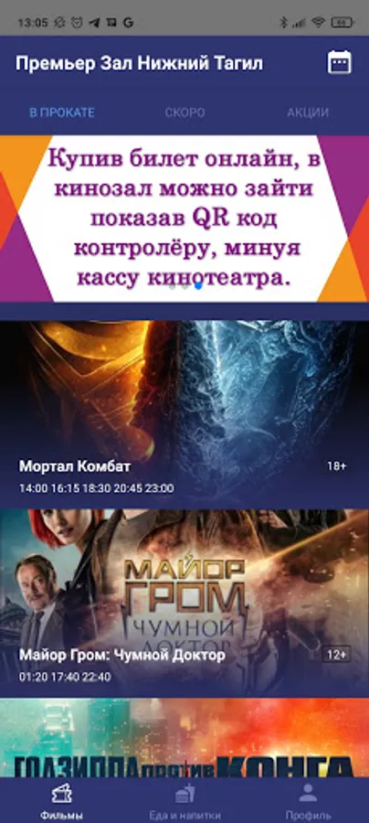In the application "Premier Zal Nizhniy Tagil" you can purchase tickets for any show in the cinema Premier Zal in Nizhniy Tagil. You can also purchase cinema bar products. When you purchase tickets or Kinobar products through the app, you will receive bonuses that can be used the next time you purchase tickets or Kinobar products.
